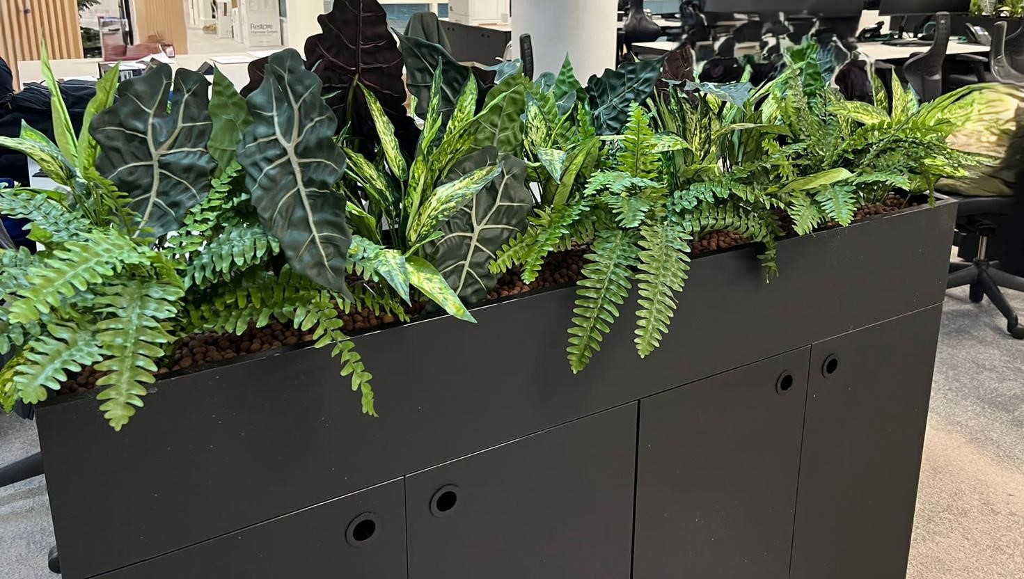 artificial planting comes in as a practical alternative. Offering the same aesthetic benefits as real plants, artificial foliage eliminates the need for upkeep while still bringing a touch of nature to your office space.