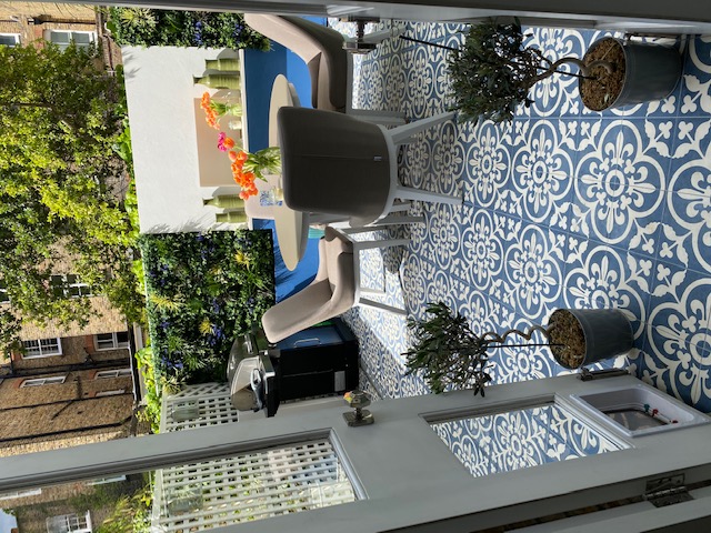 The goal was to rejuvenate a compact London courtyard, making it both beautiful and easy to maintain. The client envisioned a vibrant, welcoming space filled with greenery and colour. To achieve this, we chose our Milan artificial green wall panels, which would be perfectly complemented by stunning mosaic tiles.