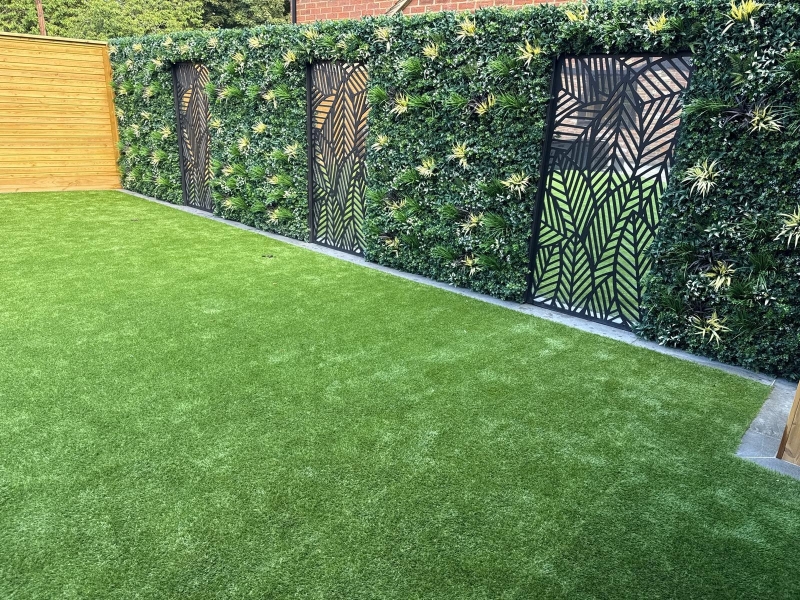 This garden transformation reimagines a private outdoor space into a modern retreat — elegant by day and atmospheric by night. Featuring stunning mirrored panels from Charles & Ivy and Green Envee’s luxury artificial planting, the design delivers a sleek, contemporary aesthetic while maximising light, texture, and visual depth.
