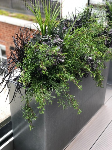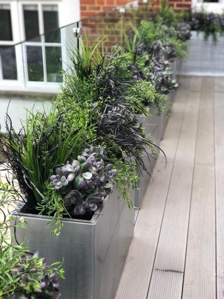 Transform the area with each planter having its own individual design to ensure the artificial plants and foliage looked as realistic as possible.