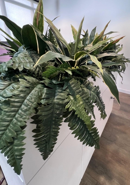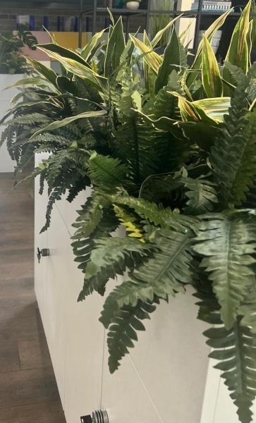 Our team at Green Envee proposed a tailored artificial planting solution using custom-built end-of-desk planters. These integrated planters offered a modern, space-saving approach to bringing greenery into the workplace. ✅ Custom Fit – Designed to align perfectly with new desk cabinetry, the planters added a premium finish to each workstation. ✅ Lifelike Artificial Foliage – We selected a vibrant mix of faux plant varieties that mimicked the look and feel of real greenery with a lush tropical vibe. ✅ Zero Maintenance – The artificial plants required no watering, trimming, or care, making them an ideal solution for a busy office environment. ✅ Improved Atmosphere – The new layout introduced natural textures and colour to the space, contributing to a calmer, more productive working environment.