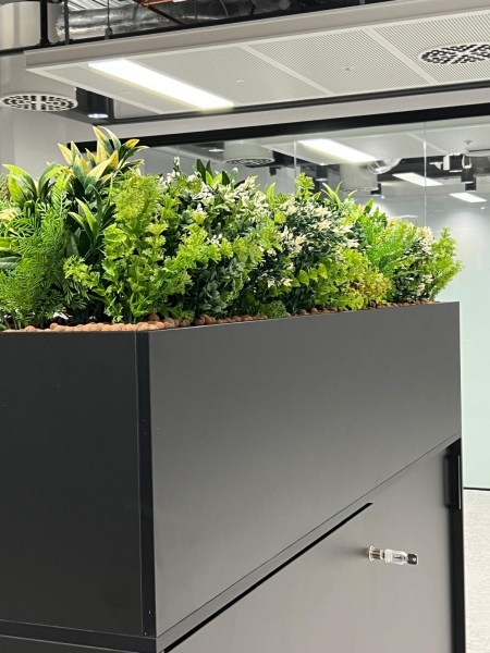 Corporate workplaces demand a balance between style and practicality. While live plants can brighten a space, they require ongoing maintenance, sunlight, and watering — all of which bring added costs and logistics. Verition needed a low-maintenance planting solution that could deliver lasting greenery without the risk of wilting or neglect.